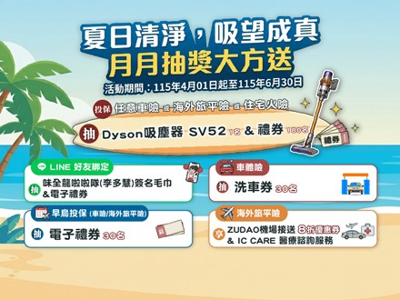 活動期間內被保險人於本公司網路投保專區,完成以下投保,符合資格者,獲得當月一次抽獎資格。